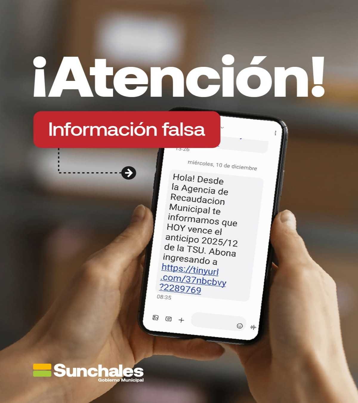 (Por: Prensa Municipalidad) – La Municipalidad de Sunchales informa a toda la comunidad que es completamente falsa la información que está circulando por WhatsApp respecto al pago anticipado 2025/12 de la Tasa por Servicios Urbanos (TSU).