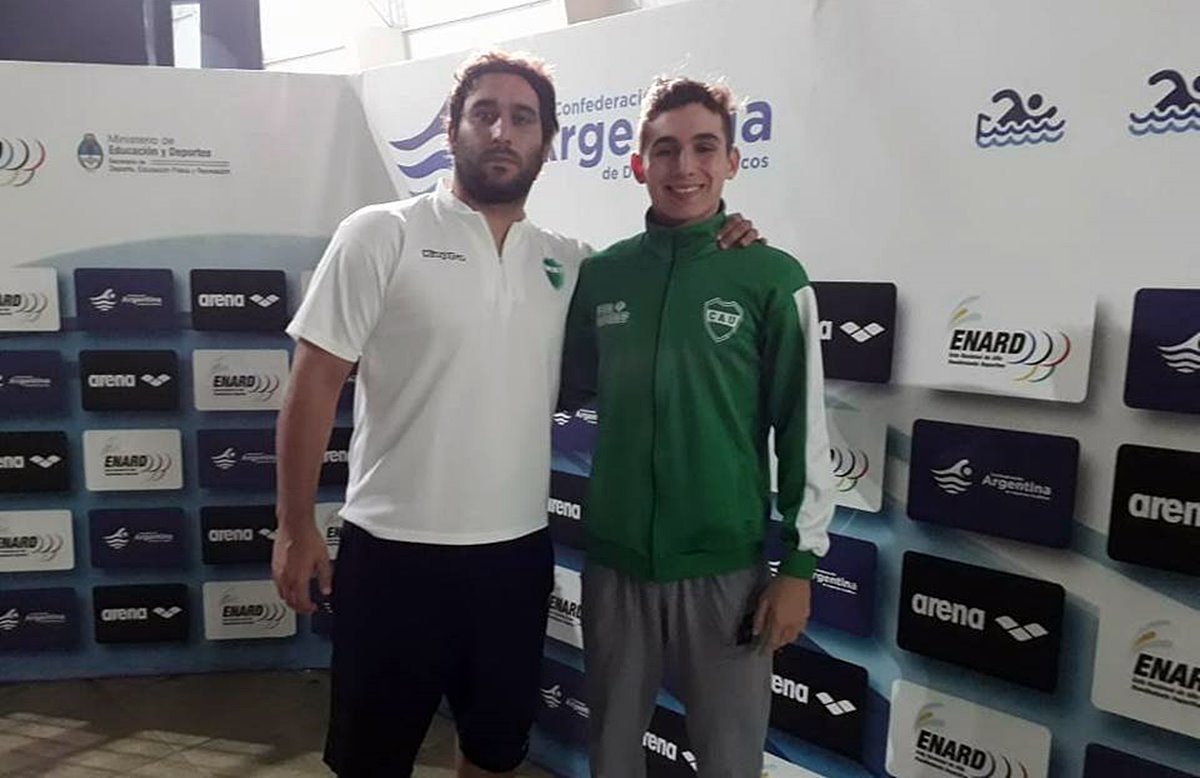 El nadador sunchalense se encuentra junto a su entrenador, Hernán Bergesio, en el Cenard de Buenos Aires para empezar a nadar el campeonato Argentino de natación.