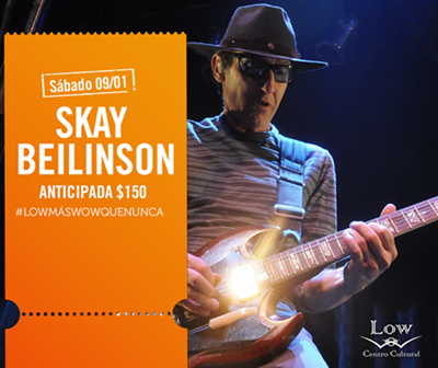 Eduardo «Skay» Beilinson es uno de los cinco mejores guitarristas del país, reconocido en el ambiente, admirado por sus pares y ovacionado por su público, este fin de semana se presentará en exclusiva en el Centro Cultural “LOW” -las puertas se abrirán a partir de la 1 am – poniendo a la zona en la mira de todos los rockeros nacionales.