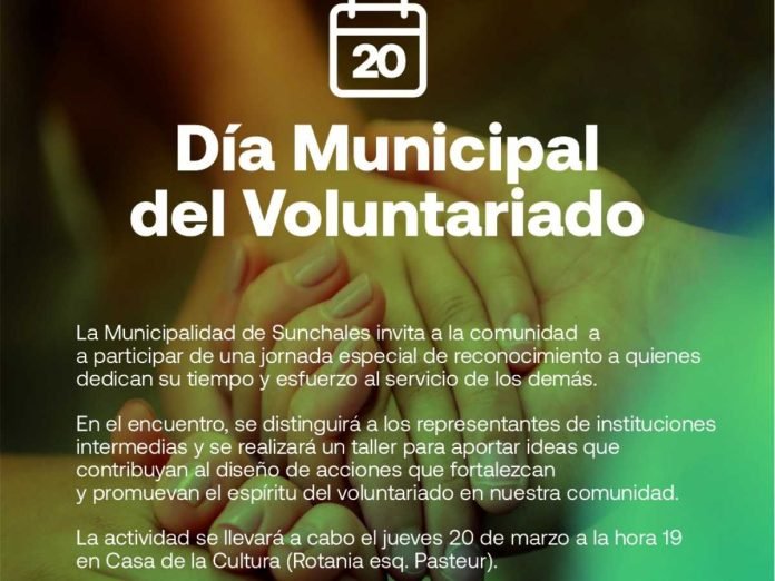 La Municipalidad de Sunchales invita a toda la comunidad a participar de una jornada especial de reconocimiento a quienes dedican su tiempo y esfuerzo al servicio de los demás.