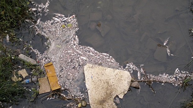 Llegaron a ser cientos de peces los que aparecieron flotando, muertos, en el lecho del canal, sumándose a un extraño olor que se pudo percibir en las inmediaciones.