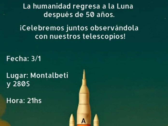 Por otra parte, señaló que se sumaron a la red ConstelAr, a través de la cual podrán tener otro tipo de información y actividades, teniendo ya la próxima prevista para la semana entrante cuando el viernes 3 de enero se den cita en Montalbetti y Ruta 280S para evocar el regreso de la humanidad a la luna y poder ofrecer telescopios para su observación.