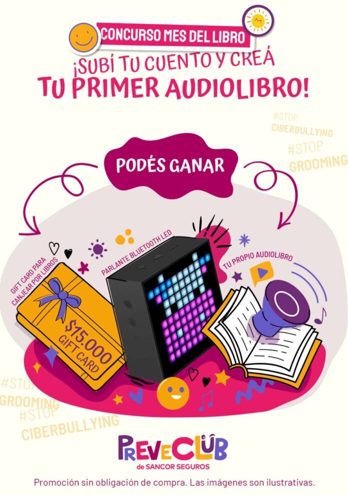Con el fin de concientizar y prevenir que sucedan prácticas como el Grooming y el CiberBullying, en el marco del Mes del Libro, PreveClub lanzó recientemente un concurso que invita a niños y niñas de entre 9 y 13 años a crear un cuento que trate sobre alguna de estas dos temáticas. Sobre el total de participantes, el jurado seleccionará a 4 finalistas, 2 por categoría (Categoría A: 9 a 10 años; Categoría B: 11 a 13 años). Los 4 cuentos serán grabados en formato de audiolibro en un estudio profesional, a cargo del equipo de Teatracuentos y finalmente serán publicados en el canal de YouTube de PreveClub. Además, los y las finalistas se ganan un parlante bluetooth con múltiples funciones y una gift card de $15.000 para canjear por sus libros favoritos.