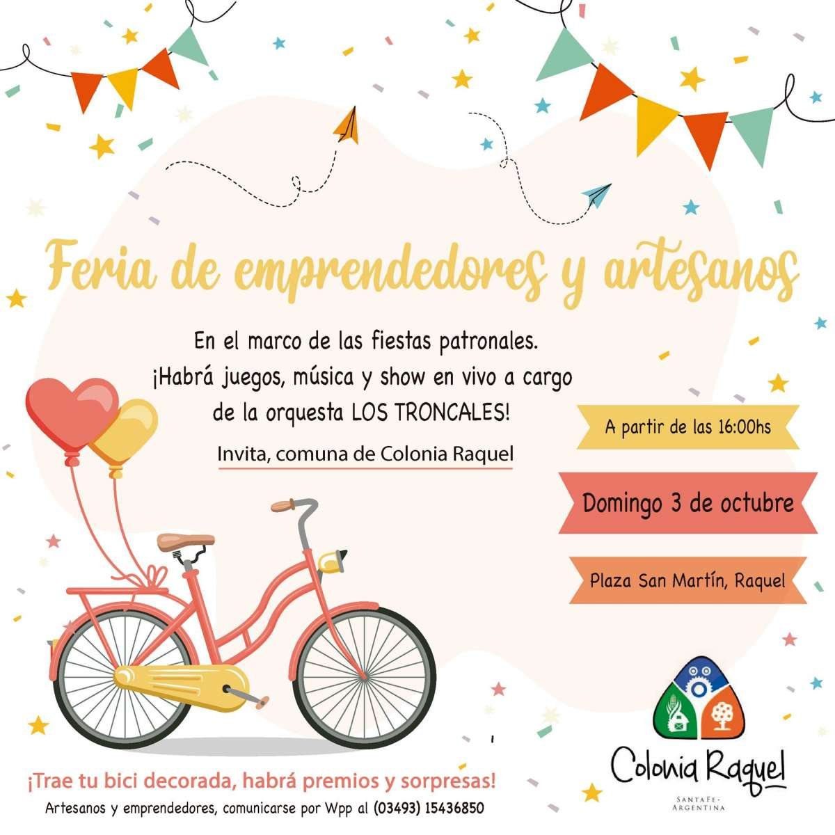 En la oportunidad, habrá juegos, música y show en vivo a cargo de la orquesta Los Troncales. También, concurso de bicicletas decoradas y feria de emprendedores y artesanos.