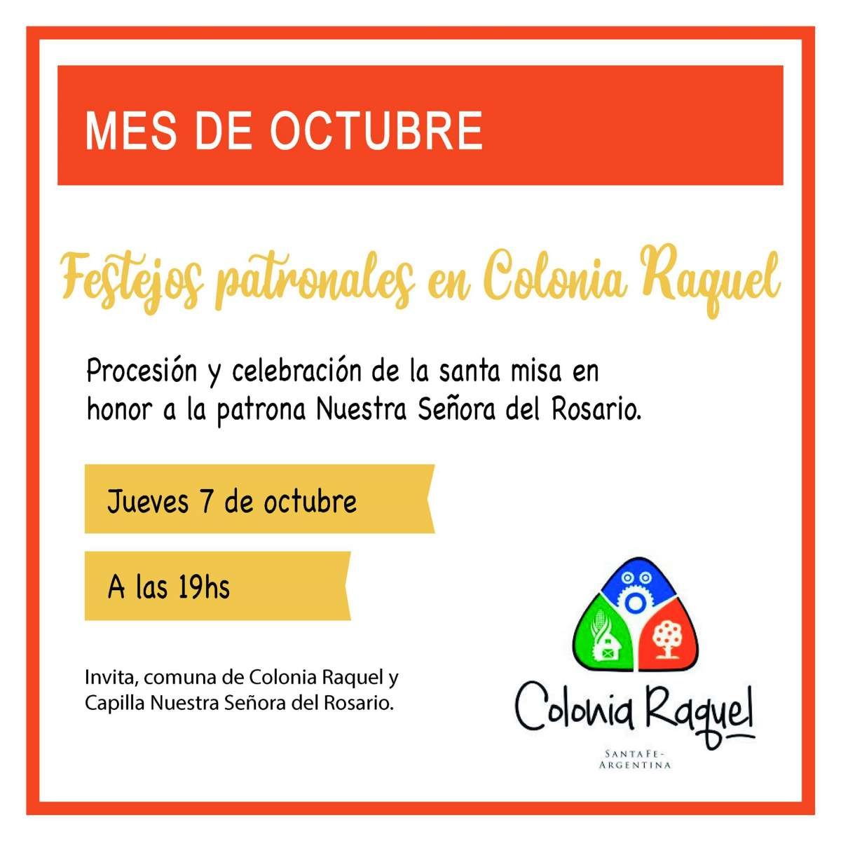 En el marco de las Fiestas Patronales de Colonia Raquel, el próximo domingo 3 de octubre, se está invitando a todos a celebrar juntos en la plaza «San Martín».