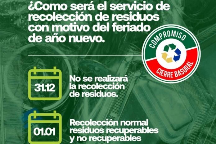 Desde el Municipio informaron que, con motivo del feriado de Año Nuevo, el servicio de recolección de residuos, tendrá el siguiente cronograma: