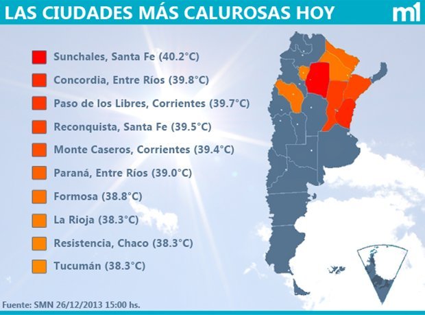 «Al día de hoy casi todo el centro y norte del país está bajo condiciones extremas de temperatura», alertó el SMN, a la vez que estimó que la situación se mantendrá en esa región «ya que no se prevé un cambio significativo de masa de aire», lo que podría originar un «récord histórico».
