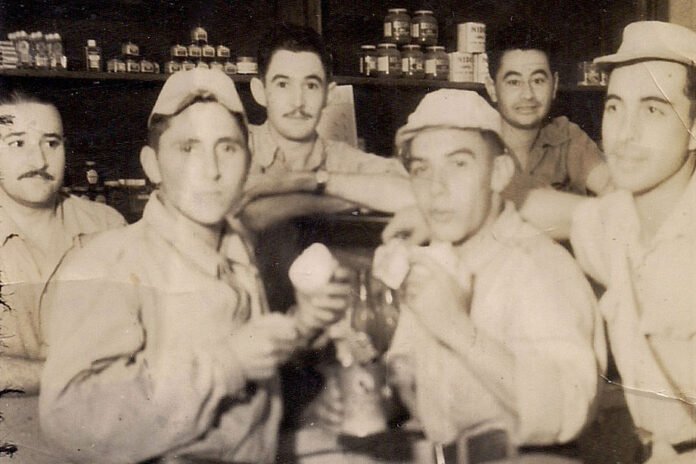 Chocho (segundo desde la izquierda) junto a compañeros del servicio militar, año 1957.