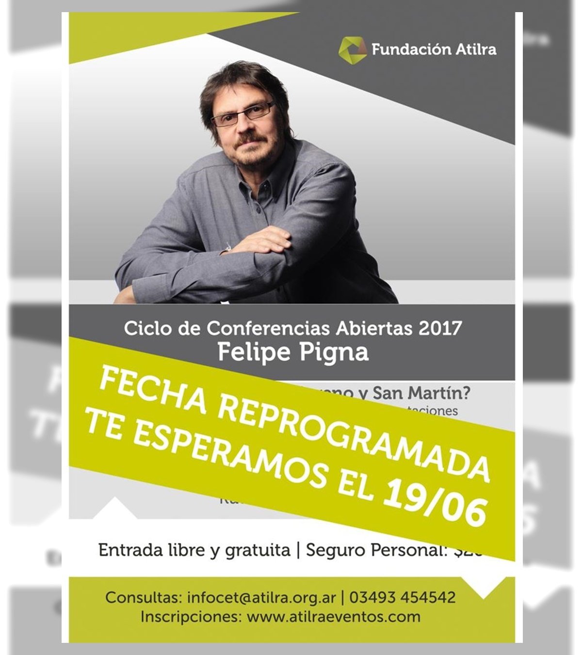 Continuando con el Ciclo de Conferencias Abiertas 2017, el próximo lunes 19, a partir de las 20.30, en el Auditorio del Centro Educativo Tecnológico Atilra, Felipe Pigna hablará sobre un tema poco visitado: “¿Qué leían Belgrano, Moreno y San Martín?.