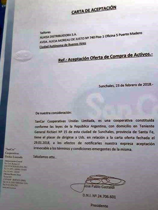 Desde Sunchales insistieron en aclarar que el acuerdo es solo por Brinkmann y nada tiene que ver con lo publicado en algunos medios sobre que este grupo español pasaría a controlar la Cooperativa haciéndose cargo de la deuda.