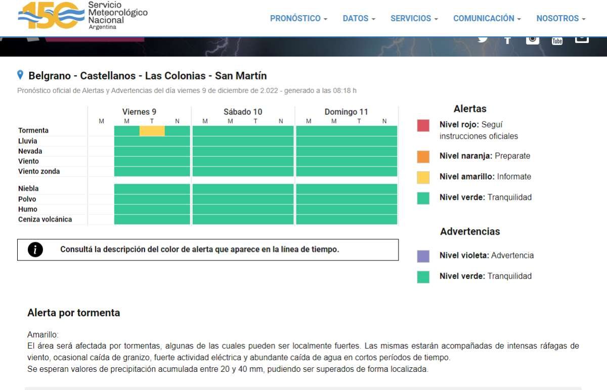 El Servicio Meteorológico Nacional ha emitido un nuevo Alerta Temprano por la posible ocurrencia de tormentas fuertes que pueden desarrollarse en horas de la tarde de hoy. El aviso se suma al de Altas Temperaturas que continúa vigente ante la ola de calor que persiste en buena parte del país.