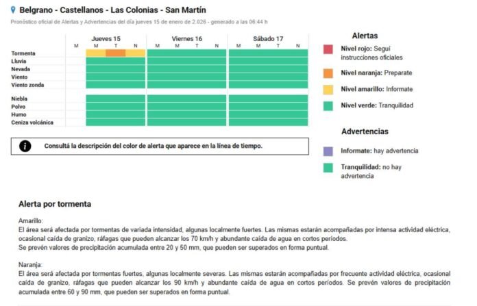 Luego de que, tal como se anticipara, en las primeras horas de hoy jueves la ciudad tuviera una importante tormenta, con un acumulado de 42 milímetros y mucha actividad eléctrica, el Servicio Meteorológico Nacional no solamente sostiene el Alerta Temprano sino que lo ha elevado a nivel Naranja.