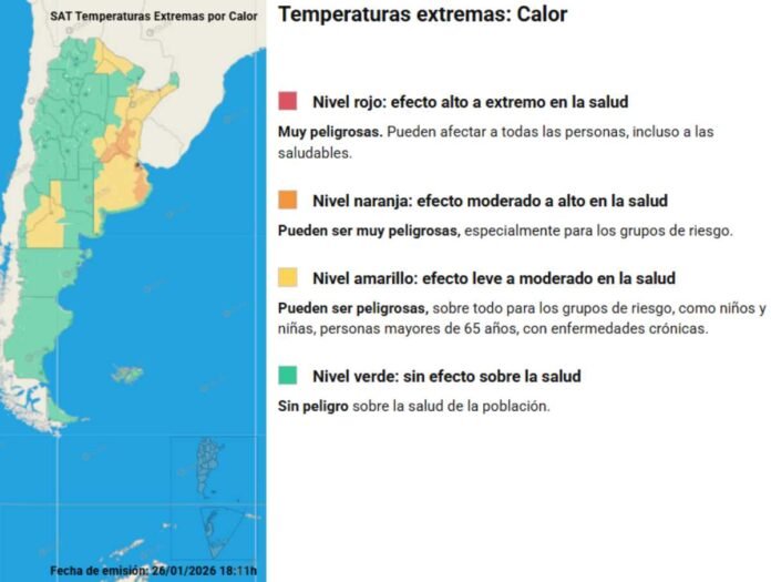 El Servicio Meteorológico Nacional sostiene para las próximas jornadas la vigencia de un Alerta Temprano ante la persistencia de altas temperaturas. El mismo tiene el carácter de Alerta Amarillo, por lo que se recomienda adoptar las medidas de prevención pertinentes.
