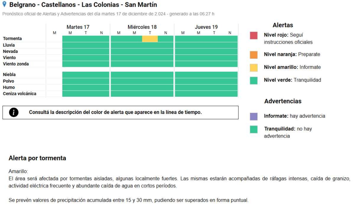 El Servicio Meteorológico Nacional emitió un Alerta Amarillo ante la posible ocurrencia de Tormentas Fuertes que pueden llegar a registrarse en esta zona, en el transcurso de la tarde de mañana miércoles.