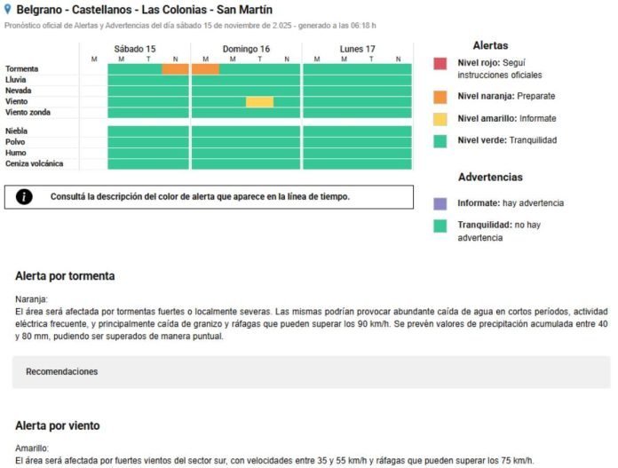 Desde el Servicio Meteorológico Nacional se actualizó la información que prevé desmejoramientos para las próximas horas. En este sentido, se elevó a Naranja el Alerta Temprano para la noche de hoy, extendiéndolo además para la madrugada de este domingo.