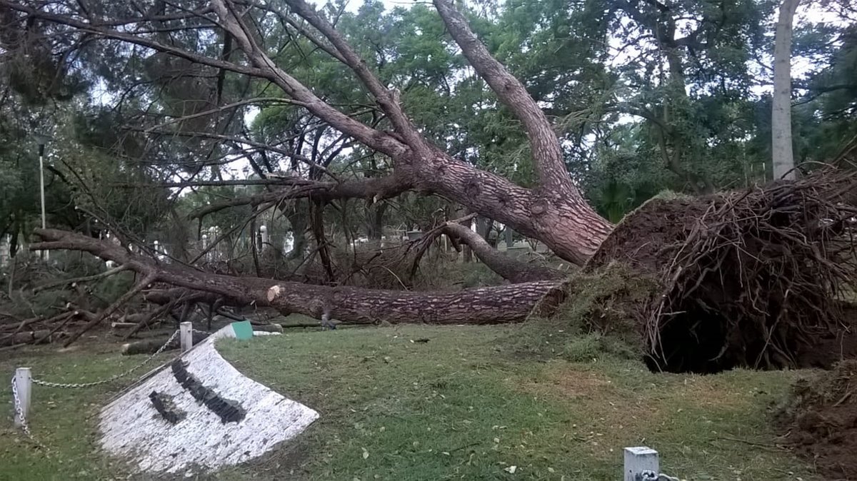 Como consecuencia del temporal de ayer, en combinación con altas napas freáticas y las recientes precipitaciones, el añejo retoño del pino de San Lorenzo, ubicado en Plaza Libertad, se derrumbó.