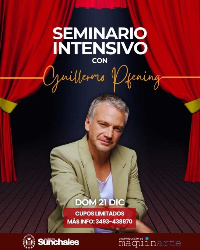 Con la organización de Maquinarte y contando con la presencia del reconocido actor Guillermon Pfening el próximo domingo 21 del corriente mes se ofrecerá un Seminario Intensivo de Entrenamiento Actoral.