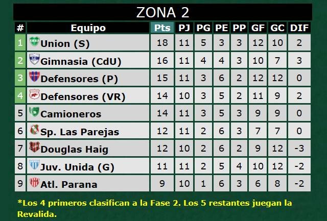 Así están las posiciones en la Zona 2