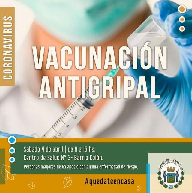 Este sábado se realizará la vacunación antigripal para personas mayores de 65 años. Se inoculará únicamente en el Centro de Salud N° 3 «Débora Ferrandini» del Barrio Colón desde las 8 y por orden de llegada.