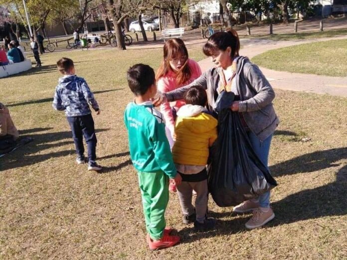 Un grupo de integrantes de la Comisión recorrieron los espacios verdes del barrio y repartieron golosinas a los niños, junto a un número para participar de dos sorteos. El primero, una pelota de fútbol, fue para el 56 color azul, mientras que otro obsequio correspondió al 13 rojo.