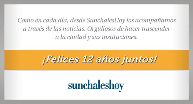 Allí estaremos, como hace 12 años, como lo hacemos todos los días. Porque somos SunchalesHoy. Somos el periodismo diario que nos enorgullece. Somos el portal de noticias que elige la ciudad a diario.