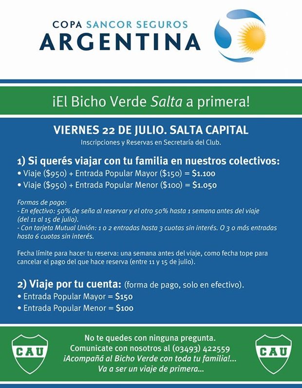 La sede se mantiene y será en el estadio Padre Martearena de Salta. Desde nuestra ciudad ya se están preparando para presenciar un partido histórico mientras que diversas peñas azulgranas ya están organizando el viaje a La Linda.