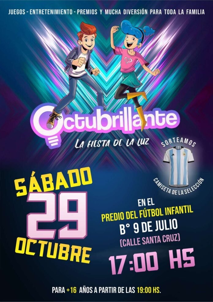 Octubrillante, es la fiesta de la Luz que se llevará a cabo el sábado próximo, desde las 17, en las canchitas del barrio 9 de Julio. Es una actividad que se organiza en distintas partes del país y del mundo.