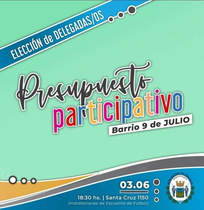 Desde la Comisión Vecinal del barrio 9 de Julio invitan a participar de la asamblea de Elección de Delegados para formar parte del Consejo Barrial. La misma tendrá lugar este viernes, desde la hora 18.30, desarrollándose en las instalaciones de la escuelita de Fútbol, sita en calle Santa Cruza 1150.