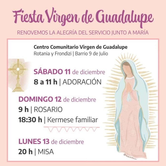 En los barriosBarrio 9 de Julio 9 de Julio: Preparativos para la celebración por la Virgen de Guadalupe 08/12/2021 Por Redacción SH 25 Compartir FacebookTwitterWhatsAppEmail Desde la Secretaría de la Parroquia «San Carlos Borromeo» se remitió información acerca de cómo se celebrará esta festividad. Habrá diferentes actividades especialmente organizadas en el Centro Comunitario «Virgen de Guadalupe». Temas9 de JulioEn los barriosVirgen de Guadalupe Compartir FacebookTwitterWhatsAppEmail Relacionadas Epe: Anticipan corte de energía para el domingo 06/02/2026 EPE anticipa corte de energía para el domingo 23/01/2026 Los Pumas extendieron el comodato de su sede local 15/01/2026 Ultimas noticias Estrenan: «Noche de Reyes… o como quieran» 13/02/2026 Carnaval 2026: El Corsódromo va tomando forma 13/02/2026 Natación: Fler y Periotti, nuevamente a la Selección Nacional 13/02/2026