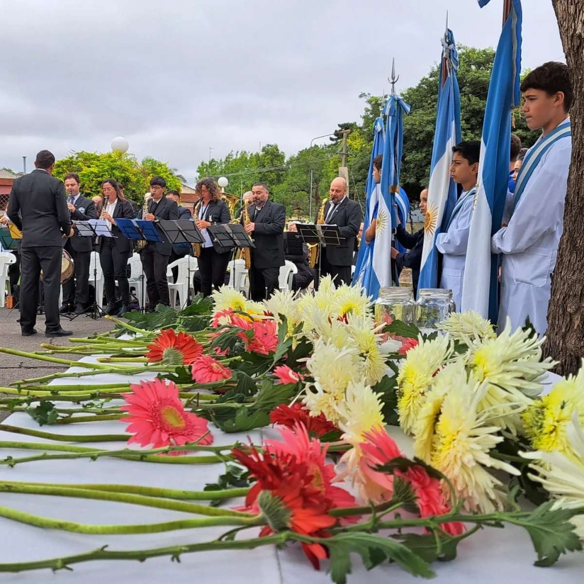 La Banda Municipal «Sebastián Rainone» emocionó con su interpretación del Himno Nacional Argentino y la Marcha de Malvinas.