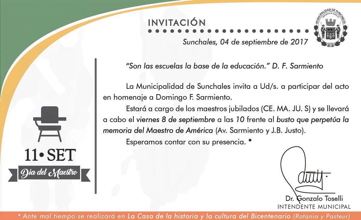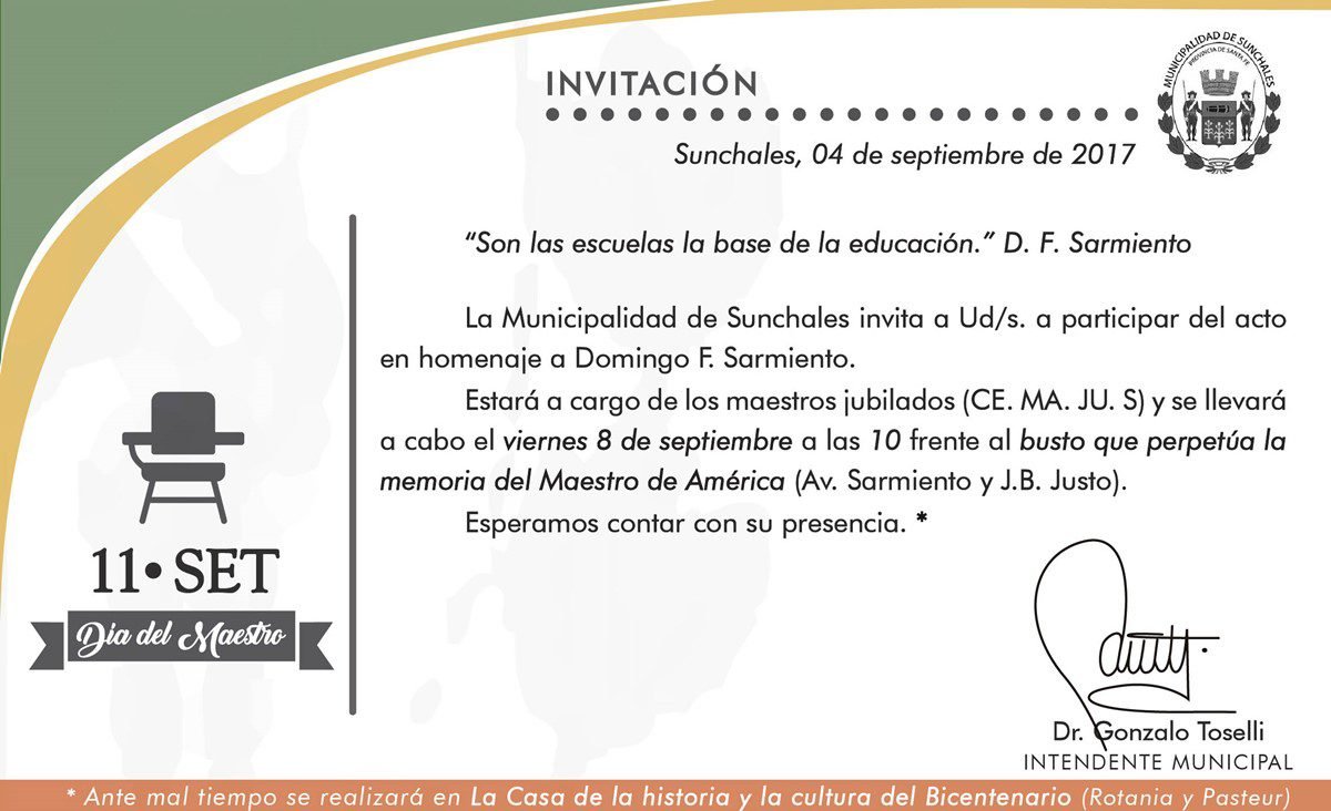 Educación Acto por el Día del Maestro 08/09/2017 Por Redacción SH 1059 Compartir FacebookTwitterWhatsAppEmail TemasactoCemajusdía del maestro Compartir FacebookTwitterWhatsAppEmail Relacionadas Alas para la Vida cierra el ciclo escolar 2025 11/12/2025 Maestros, en su Día 11/09/2025 Acto por el Día del Maestro 08/09/2025 Ultimas noticias A 11 años del «Paseo de las Artes» 07/03/2026 A 49 años de la escuela N° 2054 «Alas para la Vida» 07/03/2026 AMB – F1: Libertad comenzó ganando ante 9 de Julio de Morteros 07/03/2026