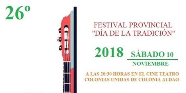 Con la organización de la escuela de Danzas «José Hernández» dependiente de la Comuna de Aldao, este sábado se realizará el 26º Festival Provincial «Día de la Tradición».