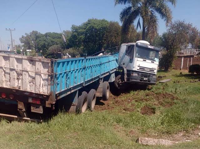 Transcurría la hora 11 aproximadamente cuando un camión Fiat Iveco que ingresaba a Colonia Aldao, cargado con hierros, realizó una maniobra que lo sacó de la cinta asfáltica, impactando con una de las columnas que sostiene un transformador del suministro de energía de la Epe.