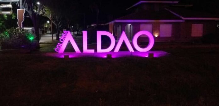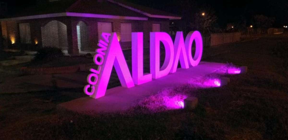 La Comuna de Colonia Aldao resolvió iluminar de color rosa el cartel de letras corpóreas que se encuentra en el acceso a la localidad, como una forma de sumarse a la campaña de concientización de Cáncer de Mamas, tal como acontece a lo largo de cada mes de octubre.