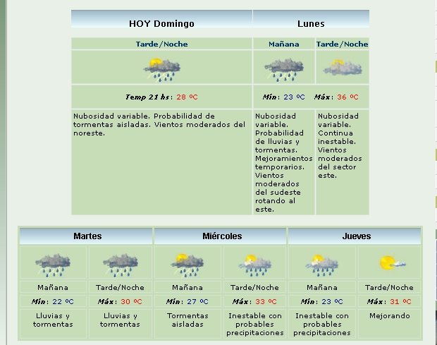 No obstante, el anticipo climático para la semana prevé nuevas lluvias y tormentas durante los próximos días, tal como lo muestra la captura de pantalla del sitio del SMN.
