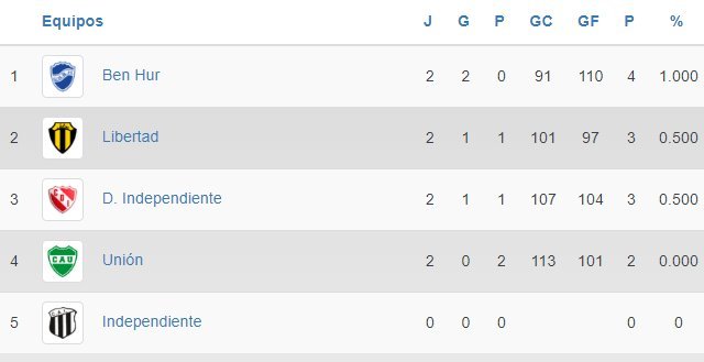 Independiente 42: V. Gorreta 0, Fernández 0, Alberto 2, Montini 2, R.M. Boggino 9, Soloaga 12, Bravo 3, Monserrat 12 y M.E. Bogino 2. DT: Santiago Dobler.
