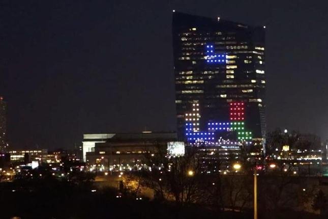 Centenares de aficionados al Tetris se divirtieron el sábado en la noche con una versión gigante del Tetris, el emblemático videojuego. En esta particular versión tamaño rascacielos, el espectáculo se llevó a cabo en Filadelfia, Estados Unidos, en el Centro Cira, un edificio de 29 pisos equipado con cientos de leds instalados en la fachada de vidrio.
