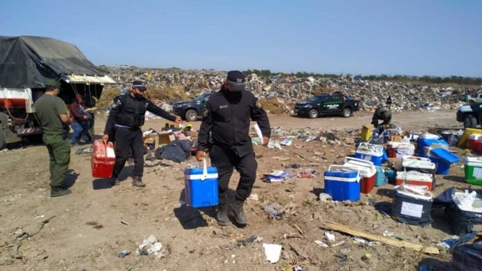 Una vez establecida la situación, los agentes intervinientes, junto a la colaboración de sus pares de la Guardia Rural Los Pumas, trasladaron todo al basural de la ciudad donde se procedía a disponer la inutilización de los cortes cárnicos.