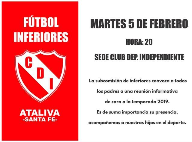 RegiónAtaliva Ataliva: Se organiza el fútbol de Independiente 05/02/2019 Por Redacción SH 412 Compartir FacebookTwitterWhatsAppEmail Con la convocatoria de la Comisión Directiva de Independiente de Ataliva, en el día de hoy se realizará una reunión informativa para los padres de pequeños que concurren a las Divisiones Inferiores de fútbol. Temasatalivafútbol inferioresIndependiente AtalivaLRF Compartir FacebookTwitterWhatsAppEmail Relacionadas LRF – Copa Departamento: Fixture definido para el arranque 29/01/2026 LRF: El Senior llega a Libertad 27/01/2026 Libertad reorganiza la Subcomisión de fútbol 13/01/2026 Ultimas noticias SAT: Alerta Amarillo por tormenta 31/01/2026 Box: Pelea Eliana Orecchia 31/01/2026 Teatro: herramienta poderosa para la reflexión y expresión social (III) 31/01/2026