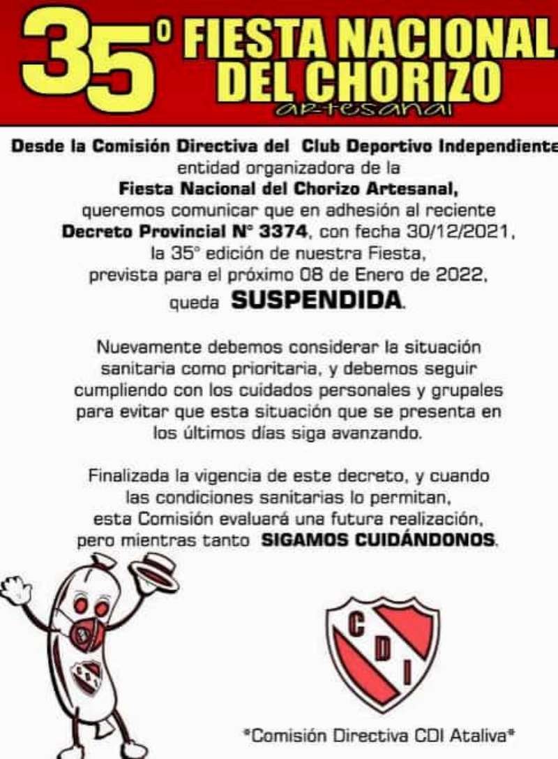 RegiónAtaliva Ataliva: Suspendieron la Fiesta del Chorizo 30/12/2021 Por Redacción SH 83 Compartir FacebookTwitterWhatsAppEmail Así lo informó en la tarde de hoy la organización del evento. Se debe a las recientes restricciones que fueron impulsadas desde la Provincia con carácter preventivo y que se extienden hasta fines de febrero. TemasatalivaFiesta del Chorizo Compartir FacebookTwitterWhatsAppEmail Relacionadas Ataliva y los 125 años de su escuela 18/09/2025 Ataliva y sus 125 años 16/09/2025 Ataliva y sus festejos Patronales 13/08/2025 Ultimas noticias Carnavales: Reprograman la segunda noche 15/02/2026 A 24 años de la creación del Taller «Alfa Centauro» 15/02/2026 A 11 años del ascenso de Unión al Federal A 15/02/2026