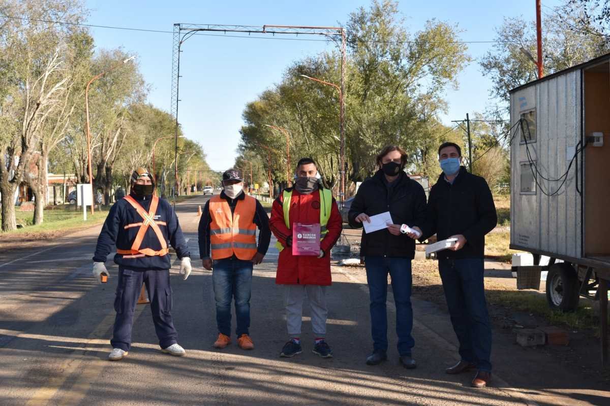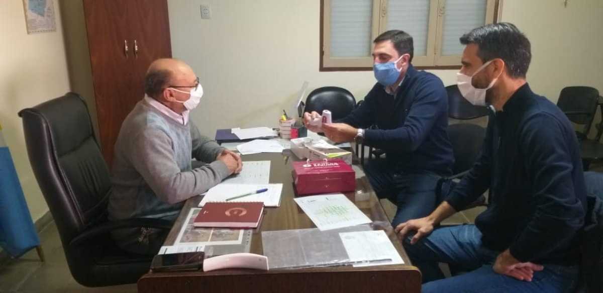 En la mañana de hoy, los Presidentes Comunales de ambas localidades recibieron la visita de responsables del Grupo Sancor Seguros, cooperativa que participa activamente con medidas preventivas para ambas localidades en el marco de la pandemia, entregando a cada una un termómetro de última generación.