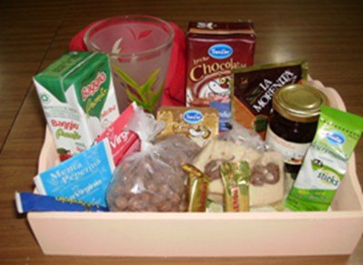 + Un sobrecito de leche en polvo, te saborizado, café y sobrecitos de azúcar y edulcorante.