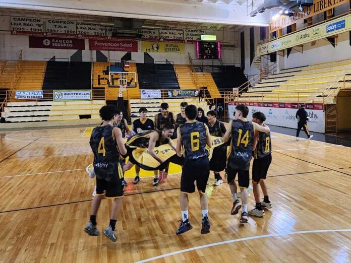 – Libertad 82 (16 Matías Re y 12 Santino Fernández, David Sucatzky y Santiago Palacios) vs. Sanjustino 76.