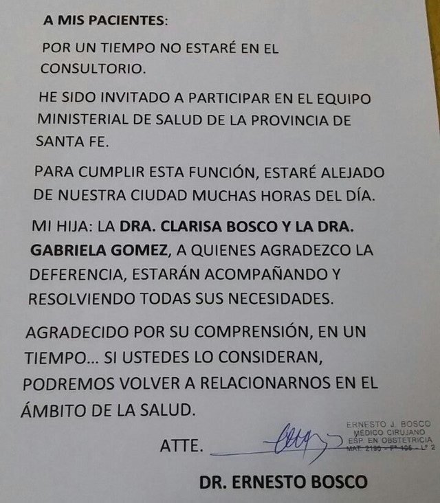 Como se mencionó, este paso ascendente en cuanto a las responsabilidades, hace que tal como expresó el mismo Bosco en un comunicado a sus pacientes, ya no pueda seguir desarrollando tareas de atención clínica. Hasta el momento, no se han dado a conocer mayores detalles ni fechas de inicio de funciones, algo que con seguridad se conocerá en el transcurso de los próximos días.
