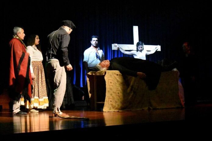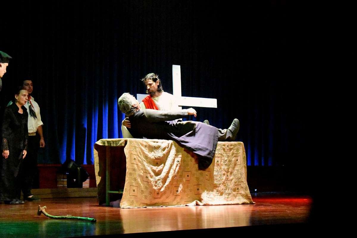 Antes, habían tenido lugar algunas escenas actuadas, otras bailadas, en una mezcla equilibrada que le aporta ritmo a la propuesta. Si bien todos conocen el grueso de la vida de Brochero, ver las actuaciones en vivo generan un ámbito especial. Más aún cuando el propio protagonista cuenta con un gran parecido físico, aportando otro cariz.