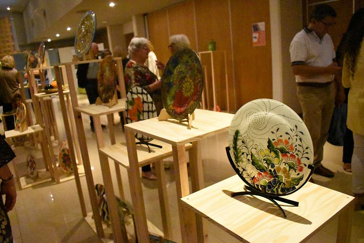 En el hall del Auditorio del Cet, previo a la función, los asistentes pudieron apreciar una muestra del Taller de Cerámica y Vitrofusión que coordina Rosa Tellini en el Liceo Municipal «Julio César Sartini».
