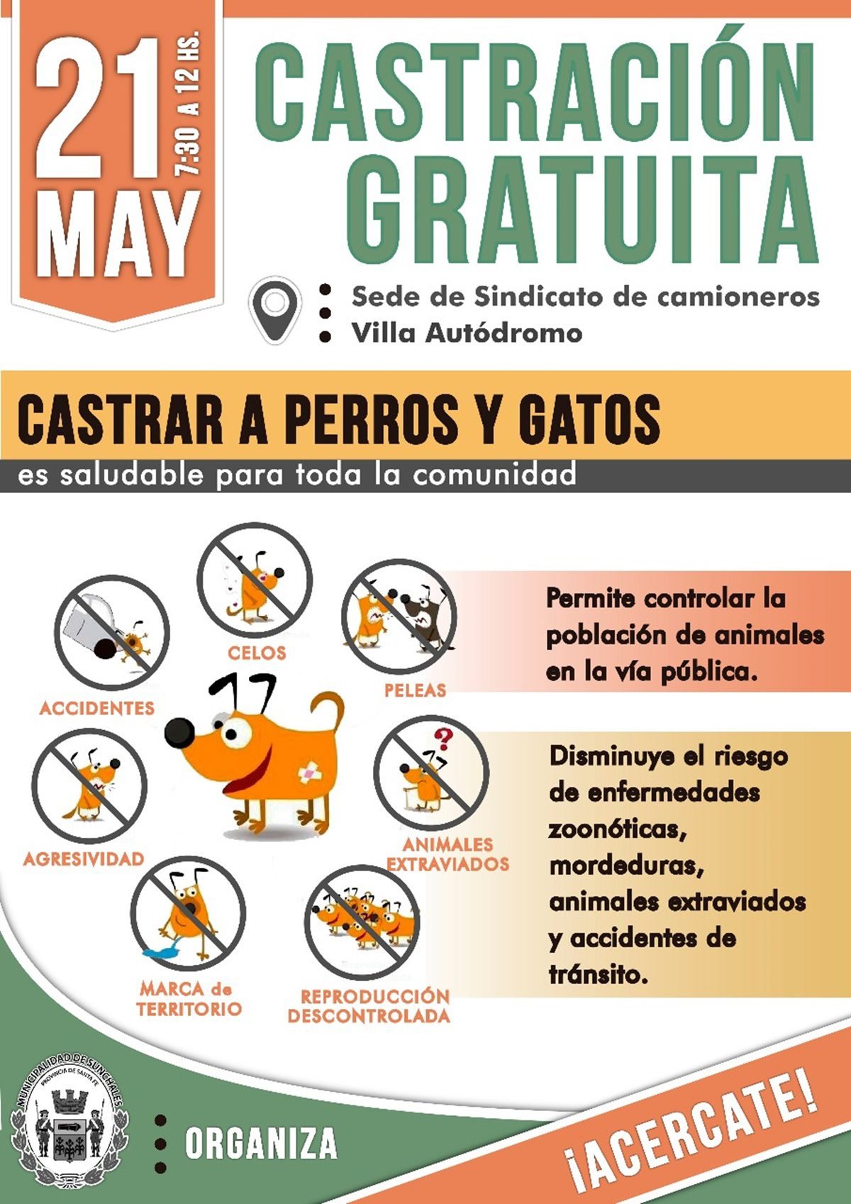 Se recuerda que la atención se presta por orden de llegada, aunque podrá solicitarse turno previamente al número del Centro Municipal de Salud Animal (Ce.Mu.Sa): (03493) 15437132, o a través de la página web municipal.