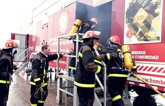 Previo al ingreso hay un curso teórico de casi dos horas de duración, donde se abordan aspectos de seguridad en los incendios y los elementos a tener en cuenta antes de acceder a la simulación práctica.