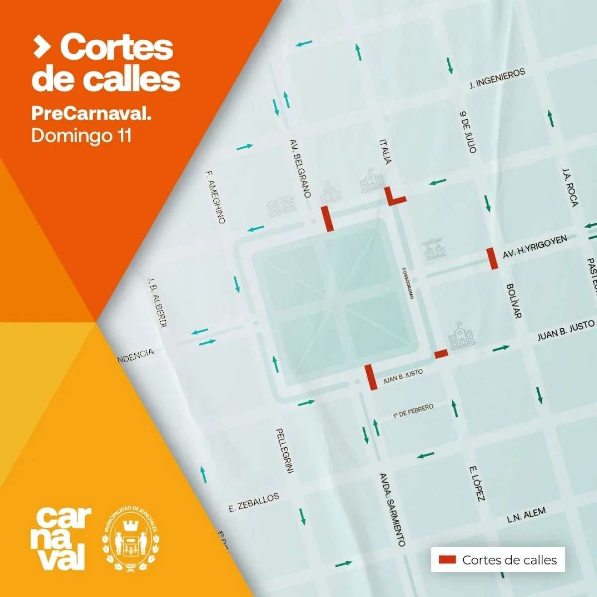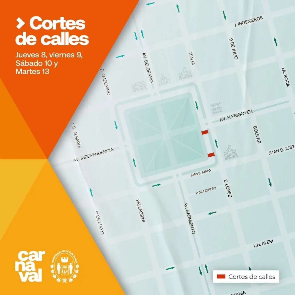 Además, el plano muestra que, tal como fue anticipado, sobre plaza Libertad habrá un sector infantil, un domo y ferias. El escenario, en esta oportunidad estará en el sector sur del corsódromo.