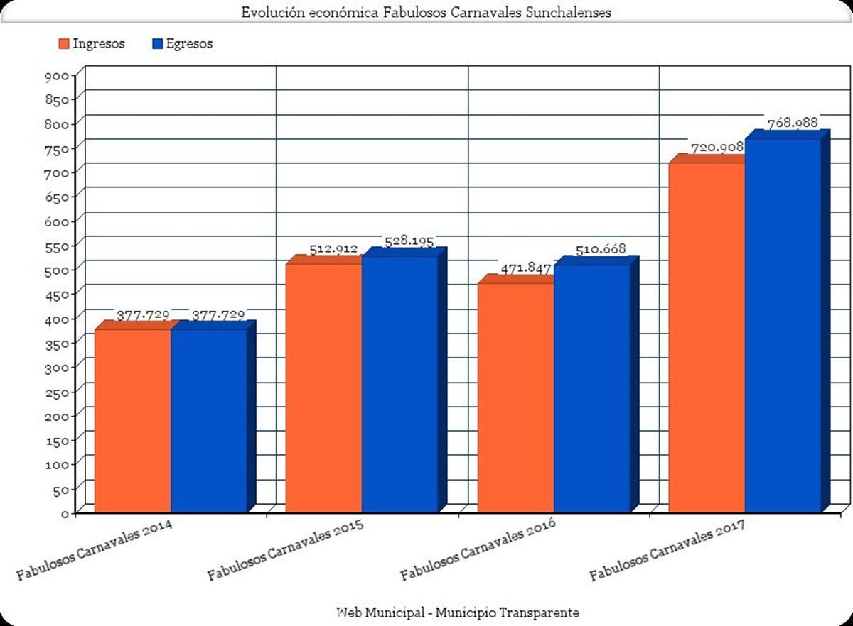 Tal como suele suceder, luego de algunos meses de culminados, los Carnavales tienen sus propios números. En el apartado «Municipio Transparente» de la web municipal, se han publicado los datos correspondientes a la edición 2017, la cual dejó un saldo negativo de casi 50 mil pesos, teniendo en cuenta auspicios por cobrar de más de 60 mil pesos.